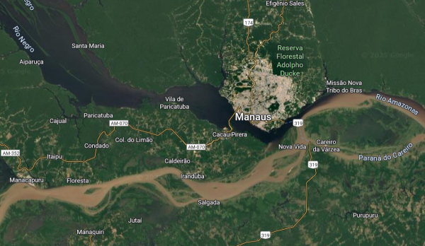 По поводу речки есть два варианта, но ближайший город - точно Манаус)