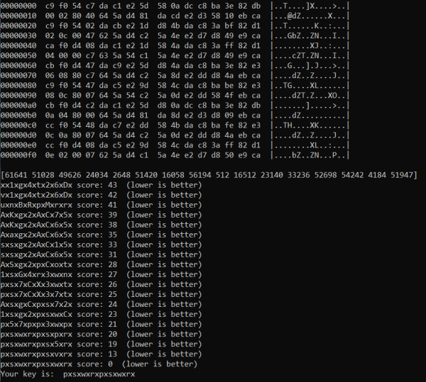 Да, ключ по варианту hasherezade и le0 различаются, но оба рабочие, бинарник сейчас проверю. Файл можно было просто добавить в архив. Я так выше и написал.