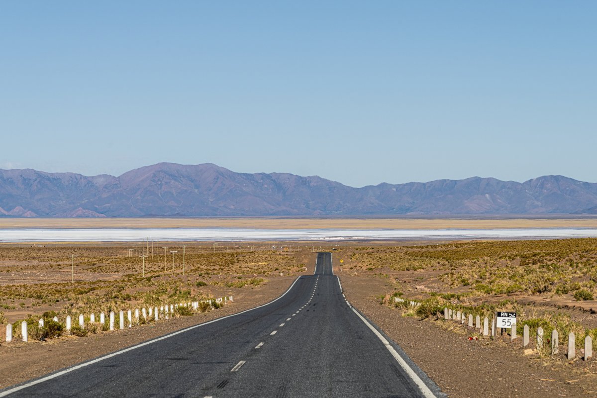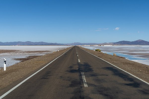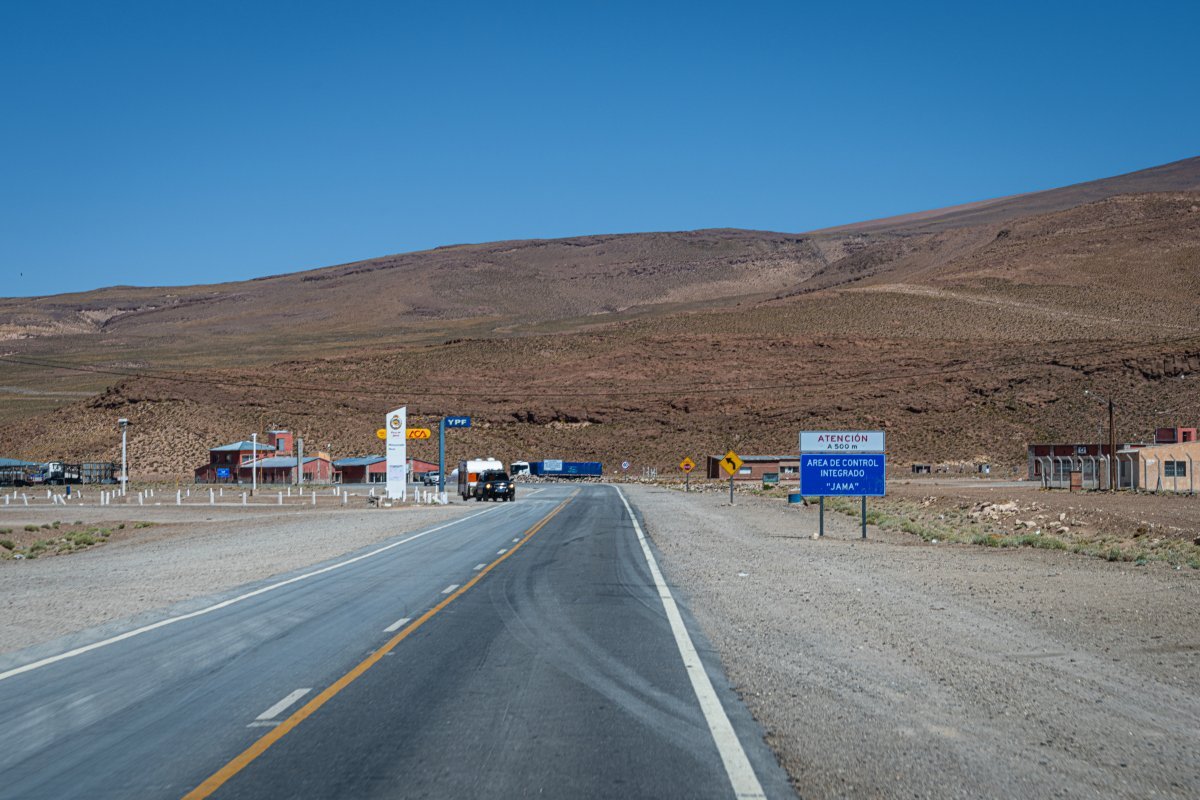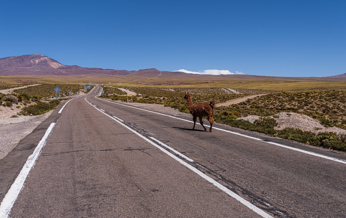Точно так! Дальше мы двинулись на запад в сторону чилийской Атакамы по совершенно восхитительной по красоте трассе RN52, которая на границе Аргентины и Чили преобразовалась в "CH-27", - но сначала почти 260 км бескрайних просторов, серпантинов, солончаков и прочих неплохих видов по территории Аргентины: Через солончак Salinas Grandes: А вот и граница, на которой мы толкались примерно полтора часа. Там всё было весьма неторопливо... Дальше по дорогам Атакамы - высокогорной пустыне, по одному из самых засушливых мест в мире. Красоты вокруг становятся откровенно вулканическими, на территории Аргентины вулканов мы не заметили: И разная живность здесь тоже пасётся: