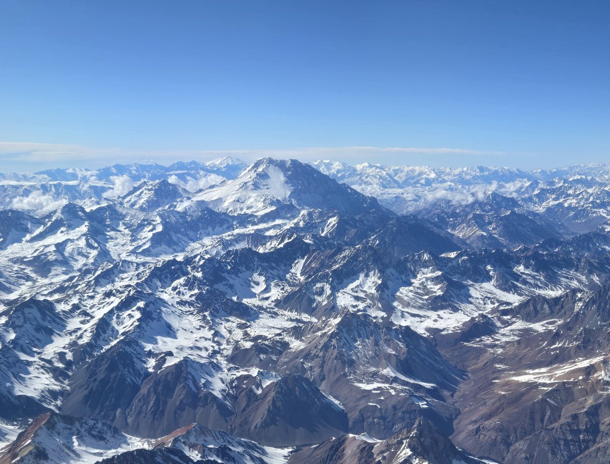 Мне уже довольно много лет, посему мне как-то некомфортно отмечать свои дни рождения. Хотел сначала написать "не люблю" - но у меня нет отрицания этих своих дней. Просто их было уже довольно много, попробовалось добавить "и достаточно на этом" - но я передумал. Ещё недостаточно! Тем не менее. Мне не доставляет особой радости все эти дня-рожденья посиделки-выпивалки, подзравительные тосты и подарки. Тем более на юбилеи. А мне сейчас через пару дней светит аж 60... И это уже многовато. Посему. Решил я на этот самый день спрятаться и куда подальше - от всех этих поздравляющих. План был неплох, и Остров Пасхи - не самое далёкое место скрыться от поздравляющих. Однако, случился косяк. По техническим причинам спрятаться "за Островом Пасхи" у меня не получилось.. То есть, прощаемся с Рапу-Нуи - - и через тот же аэропорт Сантьяго: Через Анды - летим в обратную сторону. Картинки в хорошую погоду - загляденье! Но Аконкагуа (самую высокую гору Южной Америки) в этот раз показывали по правому борту, а не как обычно по левому - где я и сидел. Но у нас же были фотографы и с правой стороны! Жаль, что на умнофон только... Но всё равно - огромное спасибо нашему случайному попутчику Д.С.Б. => Аконкагуа с другой стороны, я её отсюда ещё ни разу не видел: Ну и далее - И посмотреть вниз на ледники тоже интересно: Подлетаем к очередной цели альтернативного плана путешествия. Дворец и фавелы: Огого! Здесь уже по-китайски туннели рубят! Когда же у нас начнут... И вот так... Разное рядом: новые жилые "человейники" и просто фавелы через пару кварталов. На этом пока всё, продолжения следуют!