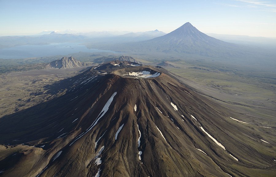 Вулкан Крашенинникова - один из самых созерцательных вулканов Камчатки. Увы, вертолётные экскурсии его обычно облетают мимо. Мои личные туристические похождения по Камчатке пока тоже оставляли его мимо списка. А зря! Увлекательнейшее зрелище! Увы, зрелище это почти всегда скрыто тучками совершенно ненужными.. На первом плане - вулкан Крашенинникова, на задней сцене - Кроноцкий. Даже в интернето-педиях не смогли нормальную фотку воткнуть... Так, может быть, в следующий раз следует заморочиться и отснять Крашенинникова "во всей красе"?...