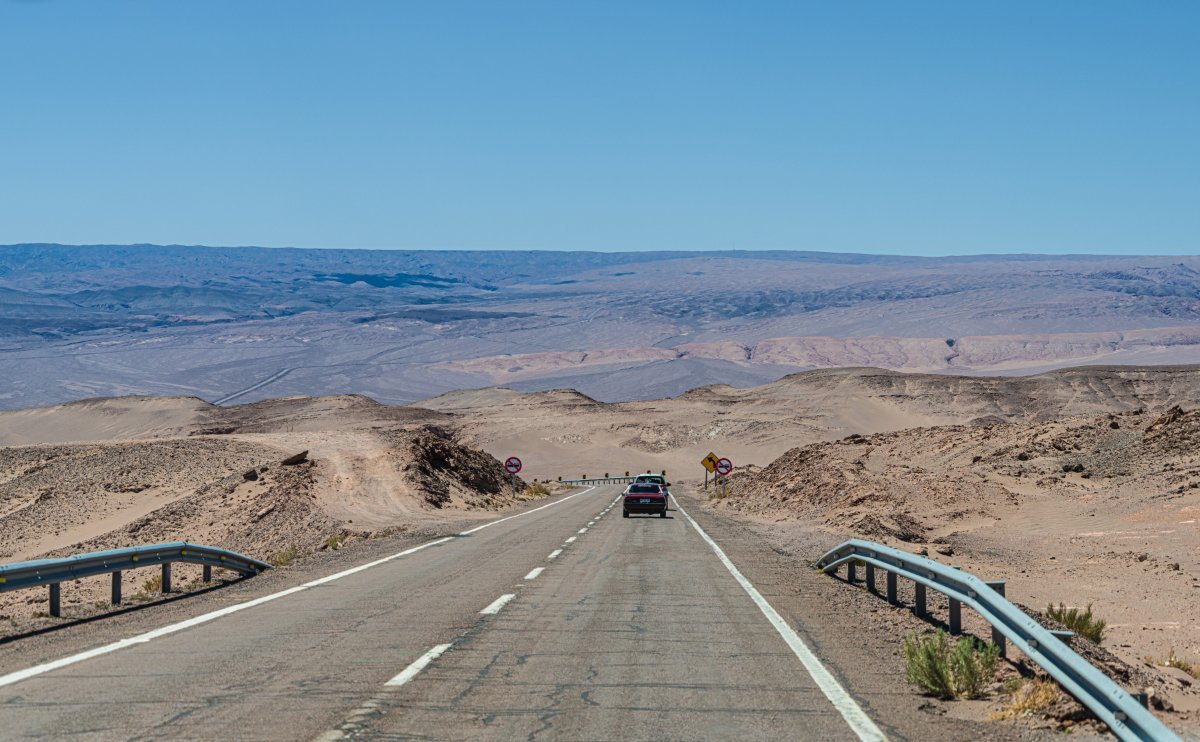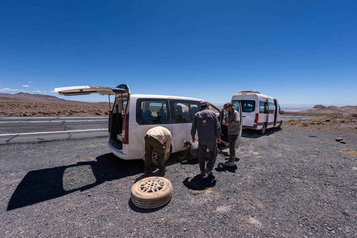 Дороги здесь вполне неплохие в большинстве своём, да в роскошных оформлениях: Бывает и такое... Кстати, в Аргентине тоже одно колесо пробили Но в целом - просто ай как "эрмосо"! (это по-испански) => Но всё на этом, Атакама была в моём списке "хотелок" - и вот сбылось наконец-то! Просто роскошно и полный восторг. Но всё запланированное освоено, пора лететь дальше. До следующих "ТВ/радио-передач"! Или также "созвонов", "бродкастов" - и как там это всё будет по-зумерски?