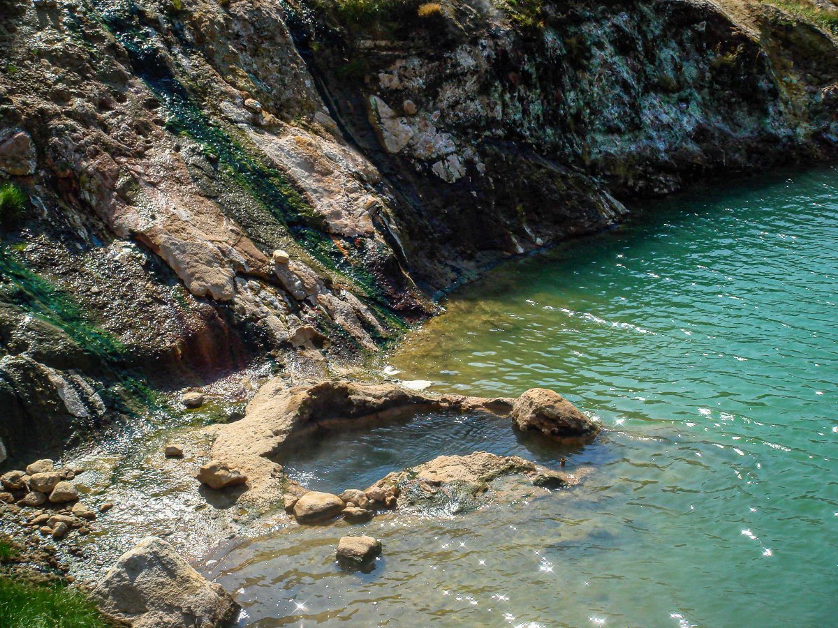 Здесь, всё же, надо сделать историческое отступление. До июня 2007 года экскурсии по Долине Гейзеров (далее ДГ) были более разнообразными. Вот такими видами можно было наслаждаться и с другой стороны ручья: Был мостик, по которому переходили на другую строну долины - - и там наслаждались видами Витража и разных прочих гейзеров и пульсирующих источников: Примерно вот так: Эти снимки были сделаны в 2006 году. Увы, в следующем 2007м всё изменилось..