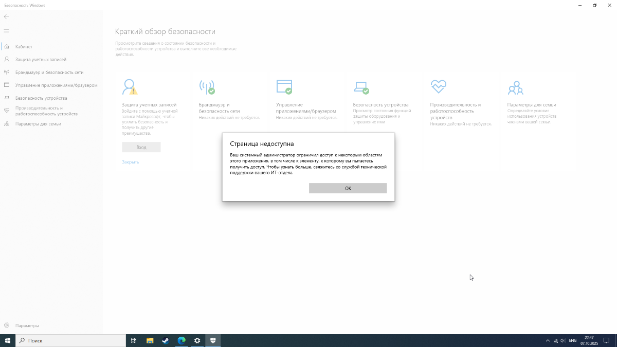 Благодарю за поддержку, др. вебом проверил сейчас действительно нету ничего такого. Но при переустановке Виндовс был момент с Windows Defender - "Некоторые параметры контролируются Вашим ИТ отделом", поэтому написал Вам. Спасибо большое
