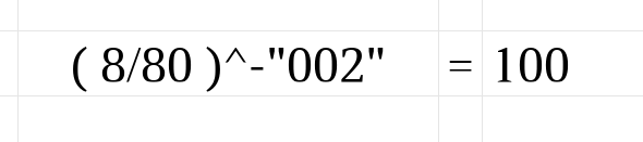 Вот это тоже весьма неплохо. 880 - двигаться дальше! ( 8/80 )^( -"002" ) = 100 Однако, там дальше маячит 881 - и там такой фокус не проходит. Но если мы порешаем "881", то вполне вероятно, что и "880" заодно тоже. Посему, предлагаю заняться "881".