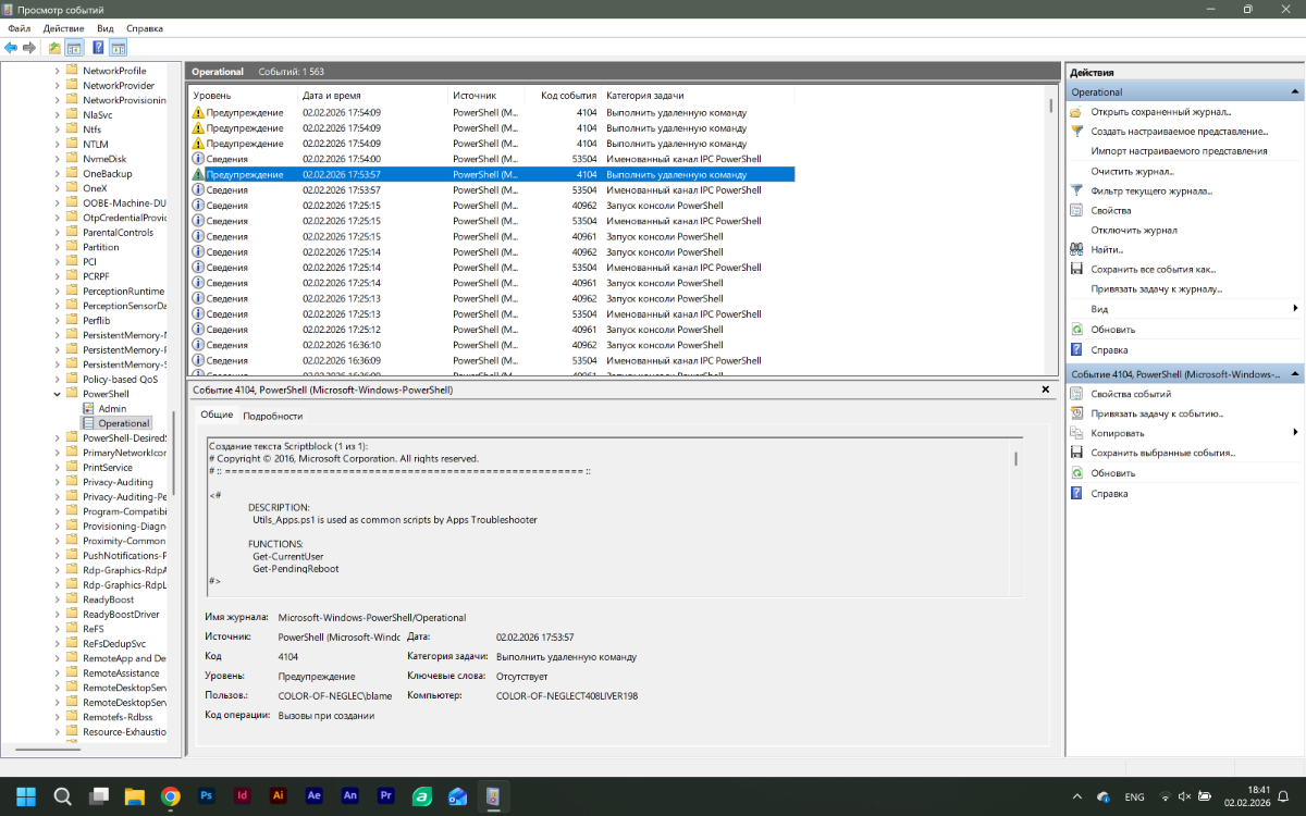 Посмотрел PowerShell, совсем недавно снова эти предупреждения появились. Но вот использование памяти уменьшилось, в спокойном состоянии обычно оно держалось на 36 процентах, сейчас же использование памяти на 20-25%. Надо будет какое-то время понаблюдать на ноутбуком. Спасибо что проконсультировали меня! -