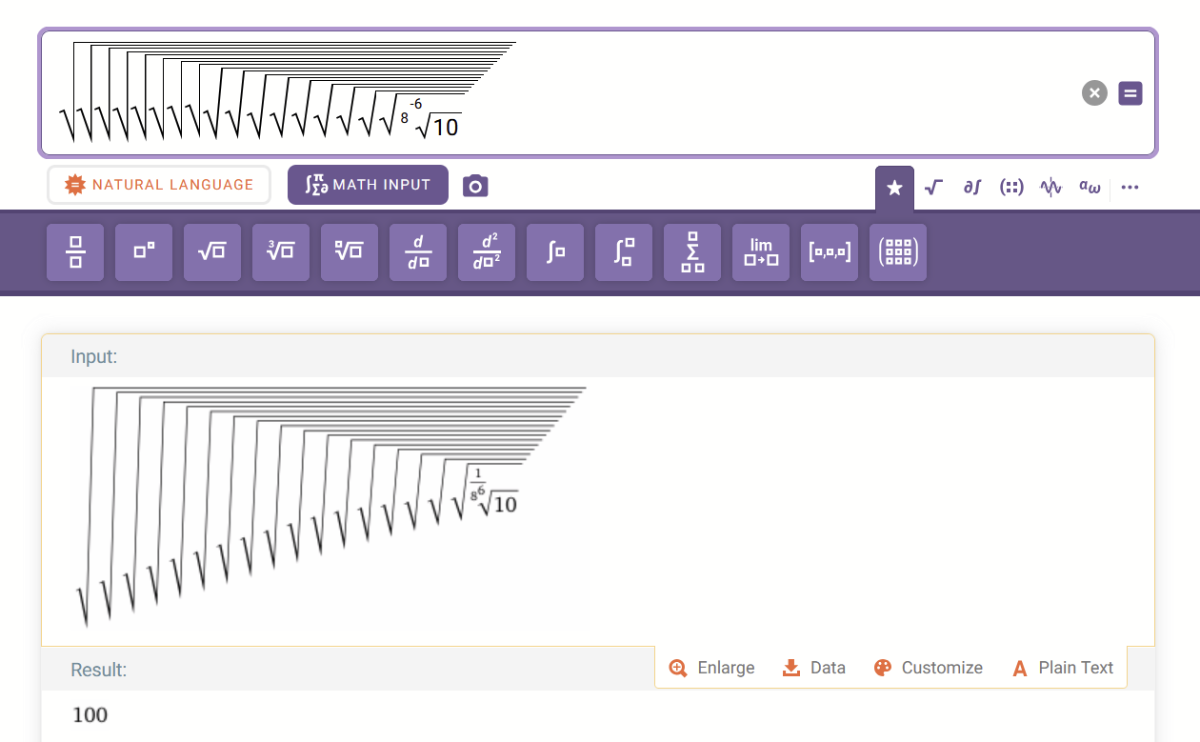 Продолжаем рубрику "Ужасы нашего городка": V...18штук...V( (8^-6)V(100) ) = 100