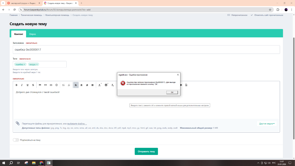 Ошибка сохранилась Ошибка чтения 0xC000000D [0xC000000D] сектора [LBA=000000000000] с физического диска #0 Если других вопросов и проблем в работе системы не осталось: завершающие шаги: Загрузите SecurityCheck by glax24 & Severnyj, https://safezone.cc/resources/security-check-by-glax24.25/ сохраните утилиту на Рабочем столе и извлеките из архива. Запустите из меню по щелчку правой кнопки мыши Запустить от имени администратора Если увидите предупреждение от вашего фаервола или SmartScreen относительно программы SecurityCheck, не блокируйте ее работу Дождитесь окончания сканирования, откроется лог в блокноте с именем SecurityCheck.txt Если Вы закрыли Блокнот, то найти этот файл можно в корне системного диска в папке с именем SecurityCheck, например C:\SecurityCheck\SecurityCheck.txt Прикрепите этот файл к своему следующему сообщению. - Сегодня
