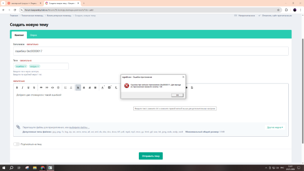 Oloe подписался на ошибка 0хс0000017