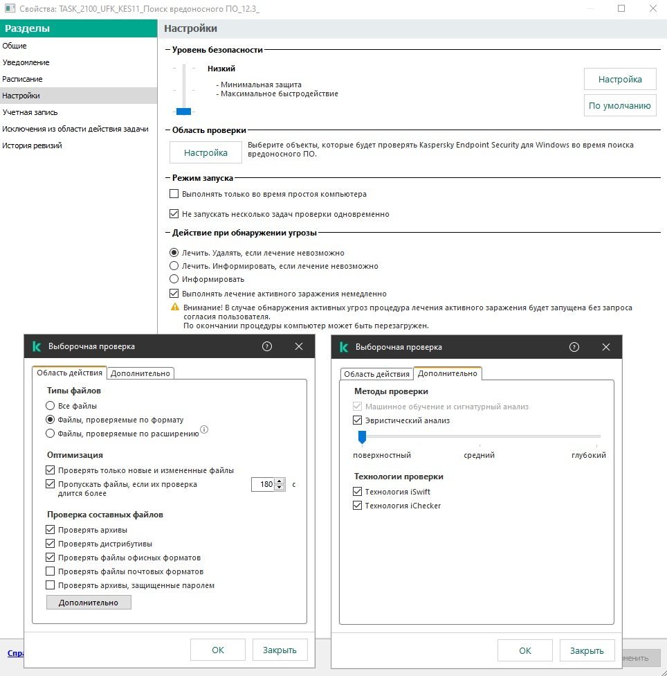 Добрый день! В сети порядка 250 пк с windows 10, развернут ksc 14.2.0.26967, рабочих станция установлен kes 12.3.0.493 и агент 14.2.0.26967. Проблема, на части компьютеров (5 шт.), за рабочее время на них не успевает отработать задача "Поиск вредоносного ПО", т.е. каждое утро запускается заново. Вопрос, есть возможность, что бы "Поиск вредоносного ПО" утром продолжил сканирование с места остановки? Рассматриваю и другие варианты решения. - Сегодня
