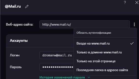 Всем привет! КПМ у меня постоянно ругается, что я использую повторяющиеся пароли, хотя они не повторяются. Происходит это обычно при использовании той же учётки и пароля на подразделах сайта. Например, берём сайт майл.ру. Очевидно, что на всех ресурсах майл.ру будет единая связка логин-пароль. Но КПМ не понимает. Он заявляет: облако майл ру имеет тот же пароль, что и почта майл ру, что и календарь майл ру! Караул! Меняй пароль. Но менять бесполезно, ведь они снова совпадут. Подскажите пожалуйста, как настроить КПМ, чтобы в одну строку адреса добавить много-много ссылок? -