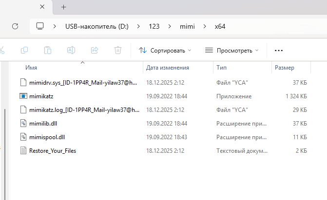 да, этот файл шифровальщика RCRU64. Проверьте, пожалуйста, что в этих папках: 2025-12-18 00:41 - 2025-12-18 02:12 - 000000000 ____D C:\Users\Administrator\Desktop\AR2 2025-12-18 00:39 - 2025-12-18 02:12 - 000000000 ____D C:\Users\Administrator\Desktop\extpassword 2025-12-18 00:34 - 2025-12-18 02:12 - 000000000 ____D C:\Users\Administrator\Desktop\mimi 2025-12-18 00:33 - 2025-12-18 02:12 - 000000000 ____D C:\Users\Administrator\Desktop\S -