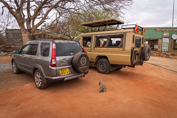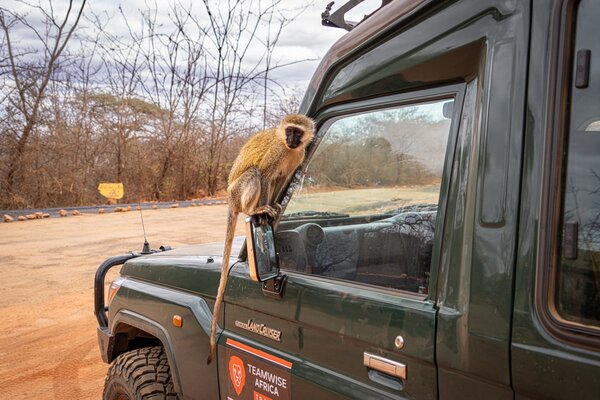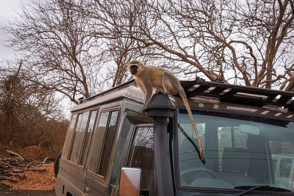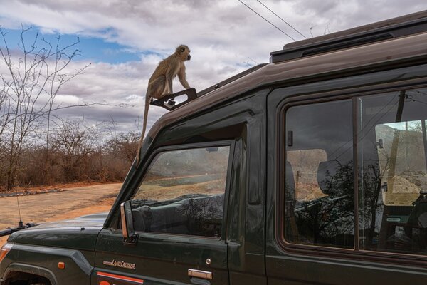 Так, пора ехать дальше. На въезде-выезде в/из национального парка надо регистрироваться (что есть правильно). А пока наш гид что-там делает по этому поводу, проверить наши машинки на плотно закрытые двери и окна пришли другие проверяльщики: А вот так! Закрыто... Хорошо, попробуем через крышу. Тоже никак... Ну, ничего. Рано или поздно приедет кто-то в расслабленном состоянии, там и подкормимся! // Всё пока на этом, пора бежать на самолёт. Дальше поедем в Диани-пляж!1 балл