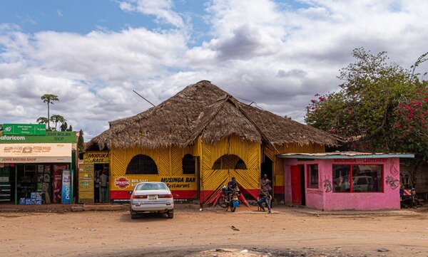 По дороге от национального парка Восточное Цаво до теплого моря-окияна решил пощёлкать фотиком, чтобы местные придорожные пейзажи зафиксировать. Само собой, в деревнях народ по проезжей части гуляет как у себя по кухне - никаких бордюров-тротуаров здесь не предусмотрено. Домики вокруг... пёстрые. Как по архитектуре, так и по дизайну Некоторые громко называются "HOTEL". Вдоль дорог продают всё. Ну, практически всё.. И так тоже... Ой, случайно очень колотирный дедушка на заднем плане - "Comfort Hotel". И так далее.. Женщины одеваются очень ярко - Очевидно, что "hardware" совсем не компьютерное Но электроника тоже присутствует. Вдруг, бабах - гром, да ливень как из ведра! Такое здесь тоже бывает.. Проехали тучу - снова солнышко. Дети из школ по домам расходятся -3 балла