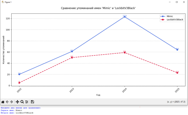 Понятно, что до конца 2025 года показатели подрастут, и, скорее всего, Mimic продолжит свое "восхождение", LockbitV3Black не столь агрессивен.