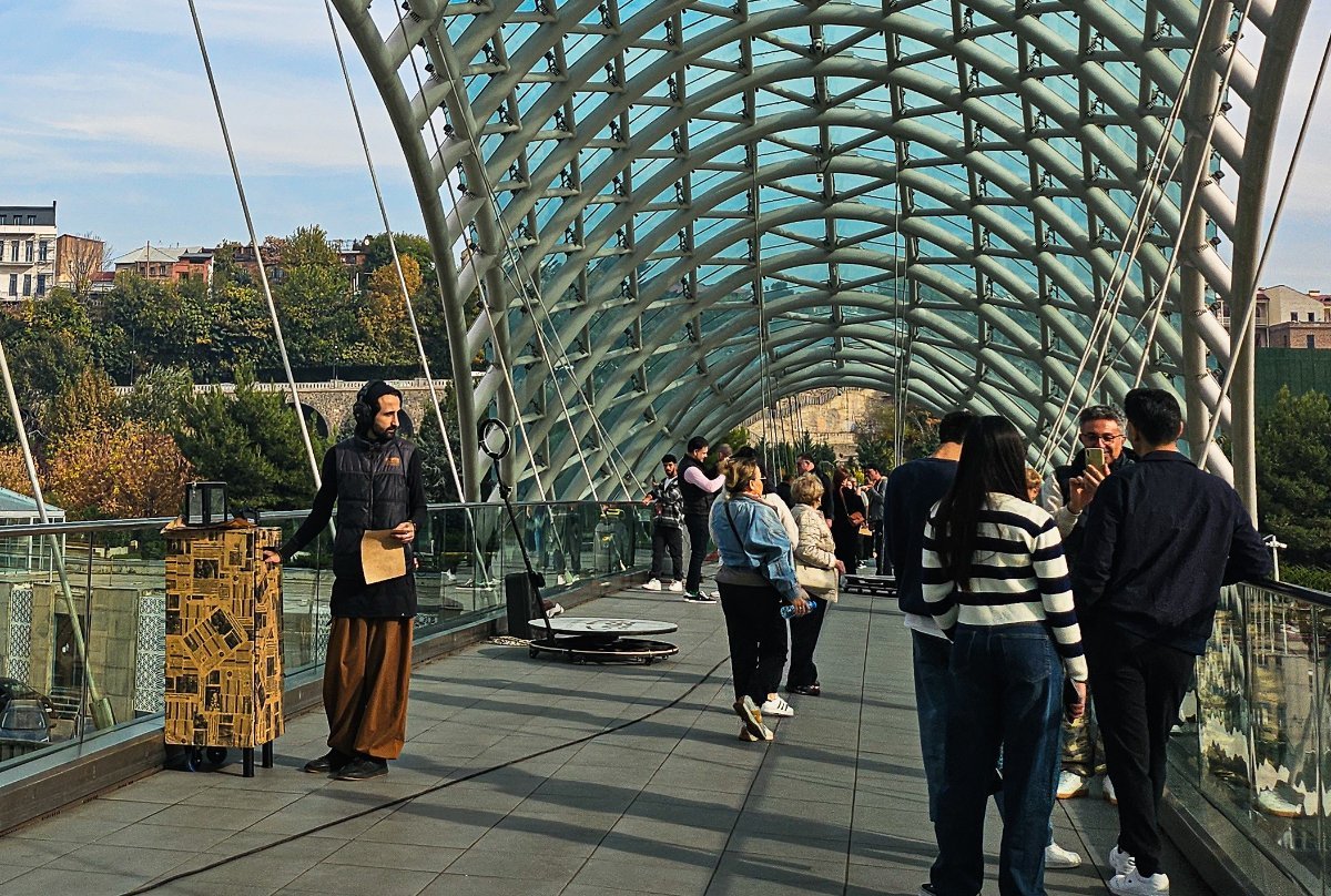 И немного тбилисского от моей случайной попутчицы Н.К. Здание канатной дороги - весьма дизайнерское, 1958 года рождения. Если верить интернетам, то это советский классицизм и однозначно архитектурный памятник. Те самые пончики, которые нас убедительно заставили отпробовать в ресторане наверху. Мы сильно не сопротивлялись, да и понравилось! Фотодоказательство того, что фотки ранее были моими На "Мосту Мира" фотографируются и фотографируют, а также предлагают всякое разное: Балконы Тбилиси - особая тема. Отличительная черта этого города - И вот так тоже: А также я там не только туризмом занимался! Всё на этом про Тбилиси, всем пока и до следующих новостей и фото-передач!3 балла