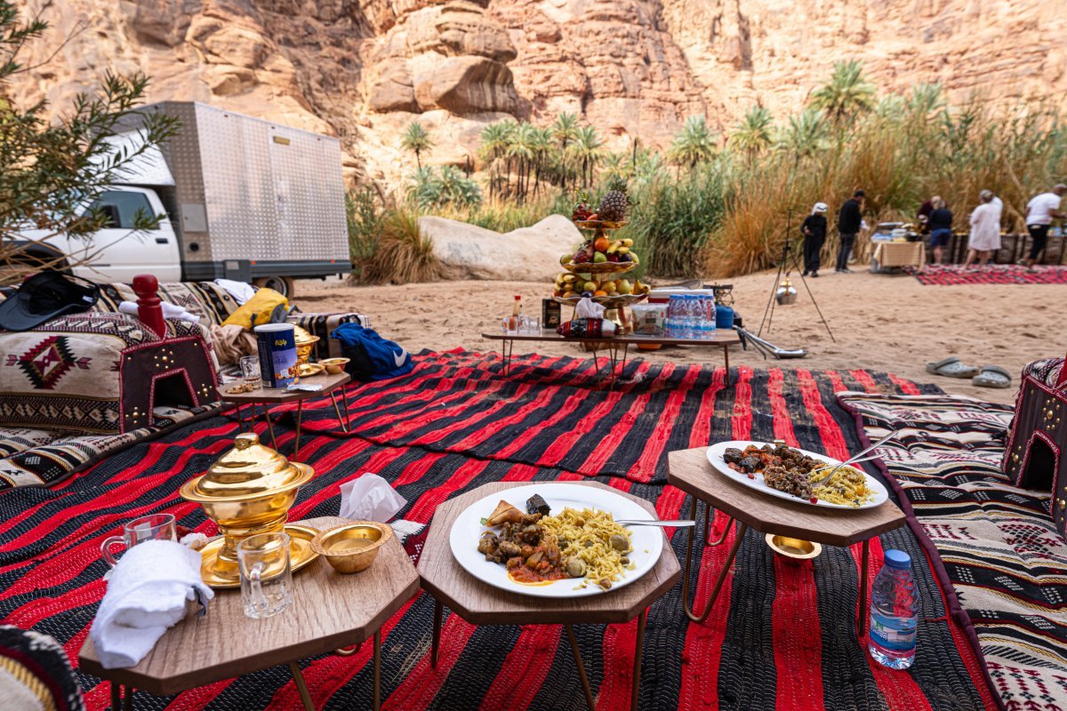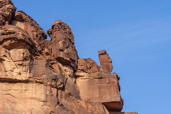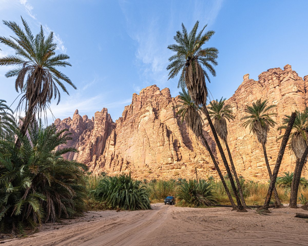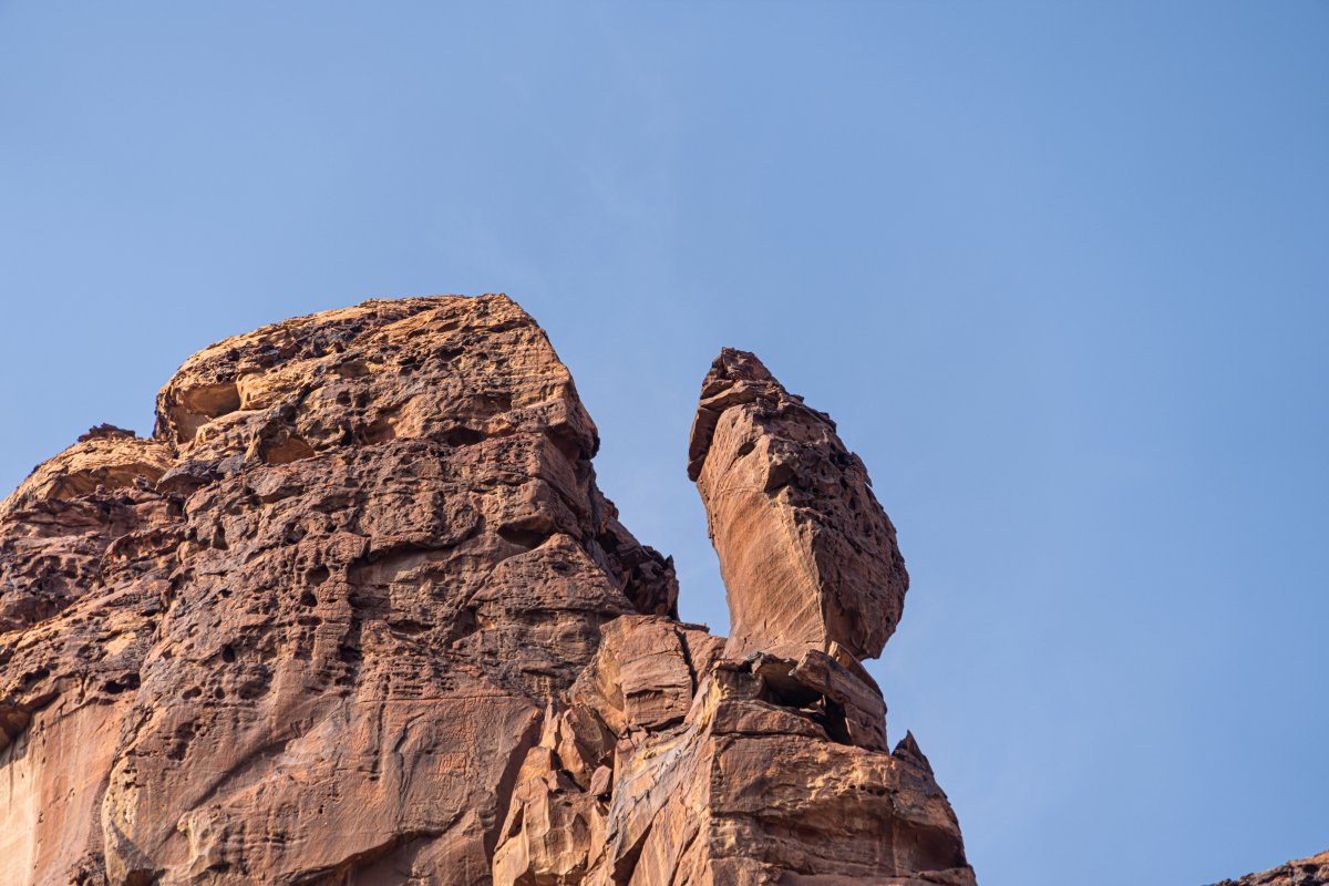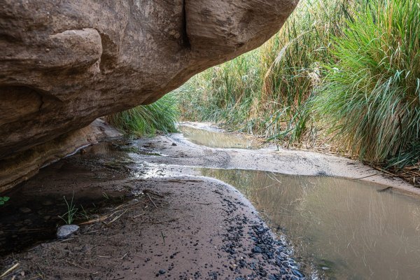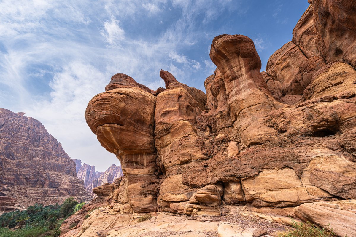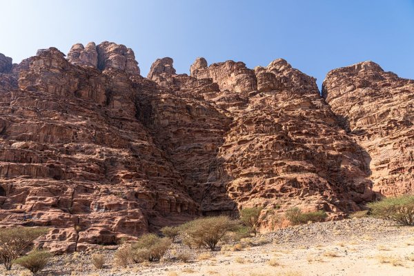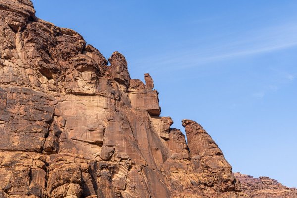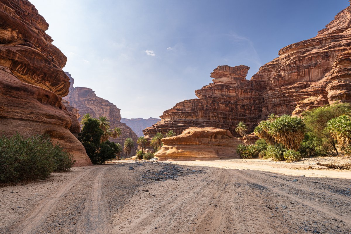 Просто роскошные виды! Одна проблема - идти по такому песку не вполне комфортно, закапываешься. Примерно как по рыхлому снегу - Вторая проблема, с которой можно столкнуться - это местный климат. Он здест резко континентальный с большими перепадами температур. Плюс летом жара, зимой холод - крайние значения от -7°С (минус!) до +44°С – смотреть сюда. То есть, для прогулок комфортная погода здесь только ноябрь - начало декабря и март - начало апреля. Ну а дальше - просо фотки. Много фоток! - и лишние комментарии здесь совершенно не к месту -> И такая красота - целых 10+ километров! Но их нужно пройти... поскольку мы - турист созерцательный. А созерцать такие красоты надо неспеша. Боковое ущелье - любопытно... Но оно быстро закончилось тупиком. И следами запрещённого здесь барбекю Идём дальше - Обратите внимание - нижняя часть скалы на несколько метров от земли как будто отполирована, а дальше идёт шероховатый камень. Но это же означает, что здесь случаются потоки воды вот такой глубины и силы! Ого-го себе.. Когда? Сезон дождей здесь вроде бы декабрь-январь... Загадочные дырки примерно на одном уровне - говорят, что это были какие-то исследования компании Сауди Арамко - но причём здесь нефть? Это же нефтяная компания! Непонятно и загадочно.. Ещё одна боковая долина открылась - любопытно, но, увы, некогда.. И дрон не запустишь - они в КСА тотально запрещены. Ну, значит, просто идём дальше и красотами любуемся: Что интересно - мы практически в полном одиночестве! (только наши две машины где-то сзади за нами на всякий случай ползут). Изредка проезжают местные жители, иногда повозка с туристами - и всё. Больше никого, несмотря на выходной день (пятница здесь - выходной). Можно забраться на какую-нибудь скалу - красотища! Каменные скальные фигуры - просто инопланетяне какие-то... Внезапно - тростник! Как это?.. Да очень просто. Примерно в середине пешего маршрута из песка начинает пробиваться вода - и дальше дорога становится мокрой, идёт вдоль ручья. Иногда - вот в таких зарослях: Прямо или налево? Если прямо, то будут проблемы расходиться со встречными машинами (если вдруг появятся) - Резонный вопрос - а видели мы других пеших туристов? - Нет. Никого более гулявших пешком мы здесь не встретили. Все остальные передвигались только на авто..3 балла