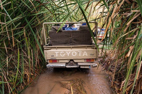 Немного ещё накину красивых картинок из Вади-Дисах (или Вади-аль-Дисах - в разных версиях по разному пишется) и пора переходить к более подробным рассказам. А картинки там весьма хороши! Вот только по песку топать не очень комфортно, а песчаных участков там в достатке... А потом - внезапно! - тростник! И ручей течёт! В пустыне! Оазис, однако.. Не слишком активных туристов здесь на вот таких открытых машинках катают - мы же всё ущелье пешком прошли. Так гораздо созерцательней! Ну, поехали:3 балла