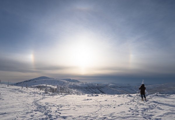 А что дальше? - да просто вернулись в Томтор, переночевали в машинах (а кого беспокоить в глубокой ночи?), встретили рассвет на обзорной точке - И дальше в дорогу, а нам надо поторапливаться, поскольку завтра вечером мы должны быть с восточной стороны Староколымского тракта, а мы пока всё ещё на его западной стороне.. Так вот, по машинам - и едем! И это неплохо, поскольку эта дорога до сих пор просто великолепна! - снег+лед, да плюс вымороженные до белизны окружающие пространства = Обязательно фоточку с "101", где у нас было -58С (нет времени ссылку ставить, ищите в историях-2021).. Без Внимания вас здесь не оставят! Выехали на трассу, подъезжаем у Усть-Нере - но что это? Мост этот уже лет пять ремонтируют! (могу фотки поискать) - Не надоело им? Или это такая местная забава? А теперь позитивные новости - мы подъезжаем к Ольчанскому перевалу: А там - полностью (почти) вымороженный мир, снег, иней и мороз во все стороны! И гало опять показали! Всё на этом на сегодня, у нас уже все спят..2 балла