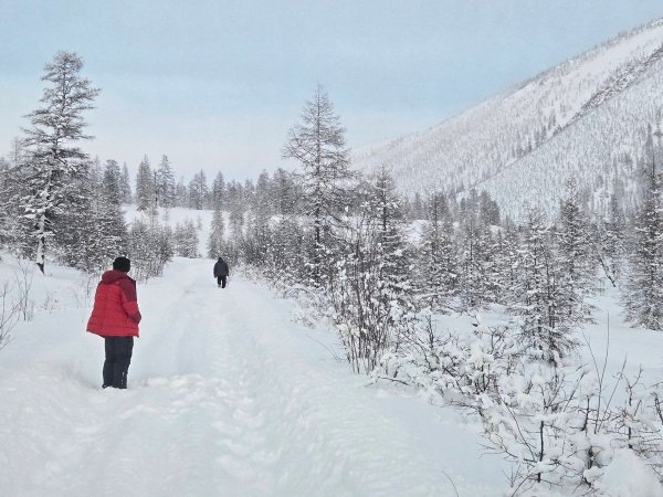 И в самом начале Староколымской дороги нас пока ничего не беспокоило - по этому снегу было идти легко и приятно, хотя он по толщине весьма сильно отличался от того, что мы видели в 2024 году. Вот эта фотка была сделана сейчас: А эта фотка из тех же мест, но это обычно-снежный 2024 год: Разницу ощущаете? А вот мы сначала не очень...2 балла