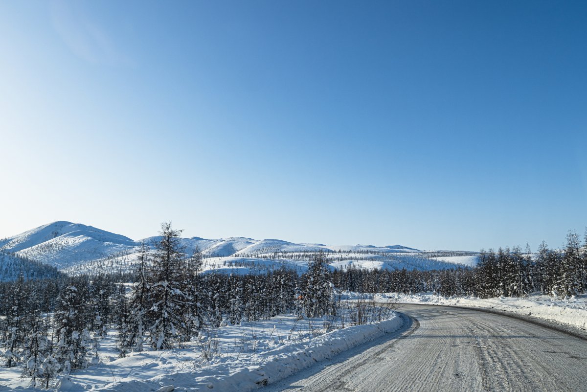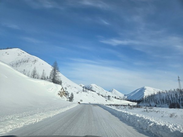 Зима в арктических и чуть ниже пространствах всегда зима, даже когда лето - просто зимой гораздо холоднее, зато мошки-комаров и прочих кровососущих нет, и это - счастье. Центральная Якутия не отностится к арктическим районам, хотя зимой здесь бывает гораздо холоднее - вот такой парадокс. Кто не верит - смотрите температурные данные по решионам (например, Тикси сравнить с Якутском). Да, здесь зимой весьма холодно, бывает -60°C и ниже (наш зарегистрированный минимум = -58°C), но от лютого холода в январе-феврале трасса "Колыма" становится только краше - и это особые, уникальные картинки. Это вымороженный, абсолютно белый со всех сторон мир - уже рассказывал и показывал фотки об этом в прошлые разы (см. MYM-2021 и MYB-2022). Увы, в этом году зима какая-то экстремально тёплая (в среднем у нас где-то -20/-30°C (что здесь весьма необычно в это время года) - посему картинки вокруг не самые роскошные. Но всё равно, когда выезжаешь рано утром в очередную дорогу, то сразу "накрывает" каким-то особым северным гипнозом. Смотреть на это можно бесконечно долго.. Особенно, когда рассвет: Солнце очень медленно поднимается над горизонтом, немного слепит - но это терпимо, виды вокруг заморожены холодом, они прекрасны и бесконечны.. А вот и поворот на зимник "Арктика" - мы там катались в далёком-2024м, и аж до Тикси!2 балла