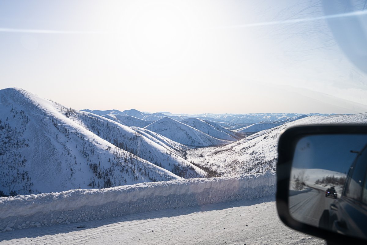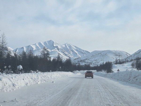 Начну с впечатлений прошлого вечера, но котором остановился Е.К. А именно "все уже спят". А именно: ПГТ Усть-Нера пользуется какой-то невероятной популярностью у приезжих по самым разным делам! Все известные нам отели, отельчики и придорожные гостевые дома были заняты. Да, наш визит не был запланирован заранее, и нам пришлось ночевать где было. А было... Е.К. после беглого взгляда на наше пристанище красноречиво ранжировал его "примерно как в Батагае". Впрочем, мне показалось, что было, скорее, "примерно как в Усть-Куйге". Не буду вас шокировать фотоподробностями. Ведь самое главное, что был тёплый туалет, койка и отличная компания! А если вдруг вы попадёте в схожую ситуацию в Усть-Нере, то вот контактная информация: На следующий день нам предстоял не очень далёкий путь по скоростной трассе, но требовалось попасть в пункт назначения не сильно после обеда. К тому же в следующем, магаданском, часовом поясе, который прибавил ко времени прибытия ещё один час. Поэтому подъём в 6:15, быстрый сублимат-завтрак и в путь! Трасса "Колыма". Я уже сбился сколько мы по ней намотали за три прошедшие экспедиции. Но сегодня мы впервые прошли по ней от Усть-Неры на восток. Погода шептала чистым небом, восходом и 20-градусными флуктуациями забортной температуры. Километров через 50 от Усть-Неры подубело настолько, что датчик температуры упёрся в минимальные -40 и отказался подавать дальнейшие признаки жизни. Летний аналоговый градусник у начальника колонны тоже упёрся в минимальные значения и развёл руками. Такой километровый столбик пропустить никак нельзя: Далее запланированная траектория нашего маршрута отклонила нас от "Колымы": в направлении Магадана мы поехали по другой дороге 44H4. Чего всем рекомендую, раз уж вас занесёт в эти края. Очень красивая дорога! Не такая скоростная по причине изгибочной рельефности, но именно из-за неё, рельефности, заставляющая щёлкать всеми гаджетами направо и налево: Я не случайно написал "в направлении Магадана", а не "в Магадан", поскольку следующий пункт назначения у нас... До сих пор пребываю под впечатлением от этого промышленного объекта. Циклопическая технологическая машина в лучших традициях современного бизнеса: красиво, чётко, чисто, всё на цифре. Ждите подробных рассказов Е.К.!1 балл