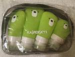 2. В данной теме представлен обзор с подробным описанием подарочного сувенира, который можно получить из магазина фан-клуба по бонусной программе, за форумное бета-тестирование, Labshop и т. п. . Пожалуйста, не обсуждайте в этой теме другие сувениры. Собирая чемодан, мы всегда стремимся уменьшить вес и объем дорожной сумки. Набор дорожных бутылочек в этом деле первый помощник. В набор входят четыре бутылки объемом 90 мл., 60 мл., 60 мл., 38 мл. В эти бутылочки легко перелить необходимые косметические средства, чтобы не тащить с собой целый флакон. Упакован в прозрачную косметичку на молнии. К тому же, если вы путешествуете самолетом - есть ряд ограничений к объему перевозимых жидкостей. На помощь вам придут вот такие стильные бутылочки - практично, лаконично и компактно. Размер упаковки: 175 х 45 х 135 мм Цвет: зеленый Материал: силикон/пластик Вес: 0,168 кг Плюсы: Легкий Компактный. Можно использовать ванной комнате и прикреплять к плитке. Минус: нет текста "Kaspersky Lab"на самих бутылочках Фото:: Фото (форум):