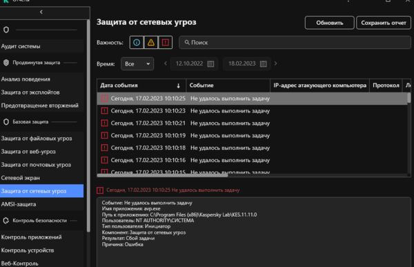 Добрый день! Имеется KSC 13.2 / агенты администрирования 13.2 , kes 11.10 на всех устройствах. Решил обновиться до 11.11. Одобрил обновления ПО KES до 11.11 ( с версий 11.3 - 11.10 ) в KSC вчера ( причём почему то 2 варианта обновления было - одним устройствам первое, остальным второе - странно.. ). Поставил на ночь довольный, ведь писали что даже перегружать не придётся мол теперь. Прихожу сегодня и компы которые обновились и перезагрузились начали сыпать ошибками. В событиях устройств везде одна и та же картина : И постоянно спамит в конце Компоненты защиты выключены. Из за засорения журнала этими событиями, как я понимаю, ещё выскачила эта ошибка и решить её просто почистив журнал событий можно. На одном из устройств якобы все компоненты работают, но мигает красным защита от сетевых угроз Как пофиксить результаты обновления?) Заранее спасибо за ответы, параллельно в саппорт отпишу. -