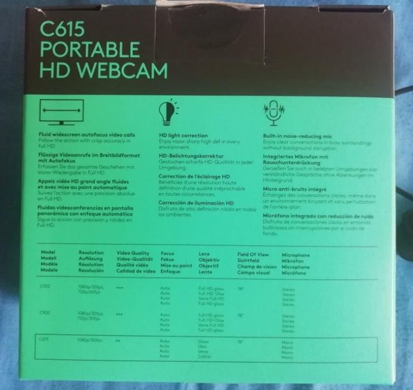Веб-камера Logitech C615 с микрофоном Full HD (1080p/30fps) Автофокус Линзы стеклянные, Обзор 78 градусов микрофон - моно usb-кабель 80см