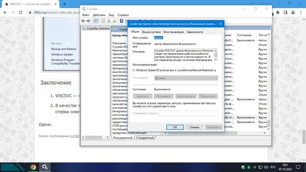 1. начало тут в общем стало выскакивать такое окно. пока тут не включишь не пропадает. хотел в службах включить автоматически. но там не активна кнопка. оно на работу систему как бы не влияет, но фобия разыгралась)