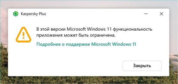 1. Всем привет. Сегодня программа Kaspersky Plus версия 21.9 мне выдала вот такое сообщение Ссылка ведёт сюда: https://support.kaspersky.ru/kaspersky-for-windows/limitations/15847 У меня 11-ая версия со всеми возможными обновлениями, но по ссылке 10-ая. Объясните мне пожалуйста на понятном языке, какого функционала я лишён и почему? Должен ли я отключить какую-то встроенную в ПК защиту, чтобы касперский полноценно защищал?