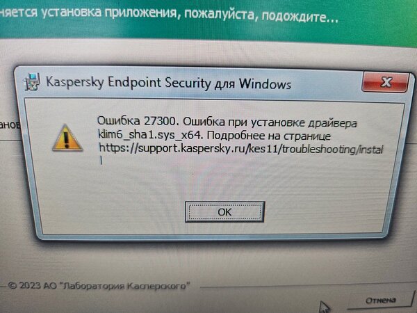 1. Здравствуйте! подскажите пожалуйста как побороть ошибку 27300 при установки новой версии касперского ?