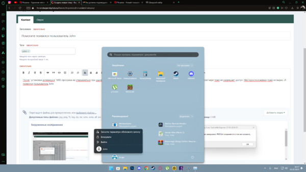 Подхватил вирус. Возможный источник: торрент-файл. – Загружает ЦП до 100%; – Не дает запускать антивирусы, сайты по аналогичной тематике; – Закрывает папку с автологом, даже с переименованным файлом (последняя версия, скачана из FAQ); Характеристики системы: Выпуск Windows 11 Домашняя для одного языка, Версия 22H2, 64-разрядная система