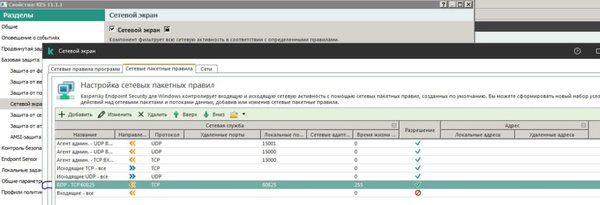 Здравствуйте, хотел настроить жесткие правила сетевого экрана в Kaspersky Endpoint Security так, чтобы было запрещено все, кроме RDP входящего, порт RDP изменен, но не работает, пока нижнее правило включено... Как можно настроить правило так, чтобы был разрешен лишь наш порт для подключения по RDP?