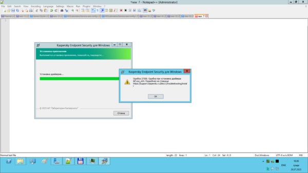 Добрый день, при попытки установки KES 12 вместо KES 11 на последнем этапе вылетает ошибка 27300, посмотрел в статье https://support.kaspersky.ru/common/error/installation/14829, драйвера под мой случай там нет как и нет уточняющего кода ошибки для этой статьи. Как определить точную причину ошибки. Виртуальная машина : vmware Система: Windows Server 2012 KES: 11.5.0