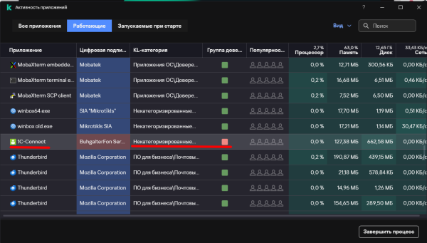 Kaspersky Endpoint Security блокирует программу 1C Connect