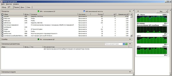 4. Добрый день! Компьютер сильно тормозит. Судя по монитору ресурсов, проблема в антивирусе. Нагружает ЦП до 50-60% . Прошу помочь разобраться, как уменьшить нагрузку на процессор. Скрины с характеристиками системы и монитора ресурсов прилагаются.