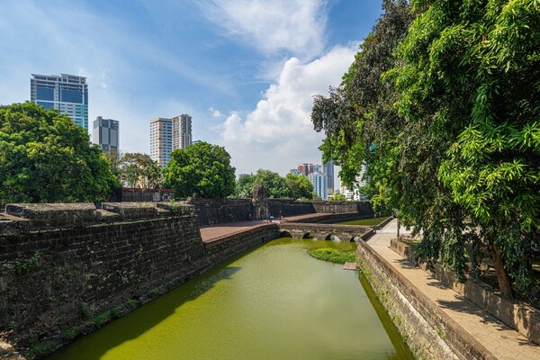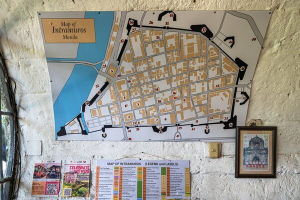 По поводу исторической части города и вообще местного туризма сделаю краткое заявление: если нет особой причины заниматься здесь туризмом, то можно этого и не делать. Очень, очень жарко! - и в целом не слишком интересно. Если кратко, то во второй половине 16 века испанцы построили здесь крепость (fort Santiago), потом её порушило землетрясение, всё было заново отстроено и улучшено, но в 1945 во время освобождения Манилы от японской оккупации форт был практически полностью уничтожен и заново строился начиная с 1950х годов. Короче, если интересно, то гулять вот здесь по карте, учитывая, что длина крепостных стен более 3км, а сильно потеть от жары начинаешь примерно через 100м прогулки.