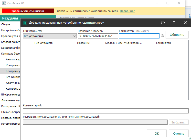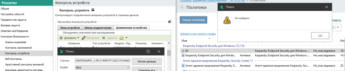 Не все съёмные носители добавляются в Kaspersky Security Center