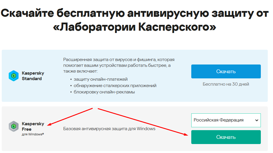 На бесплатную версию антивируса Касперского я выше давал ссылку, будьте внимательны.