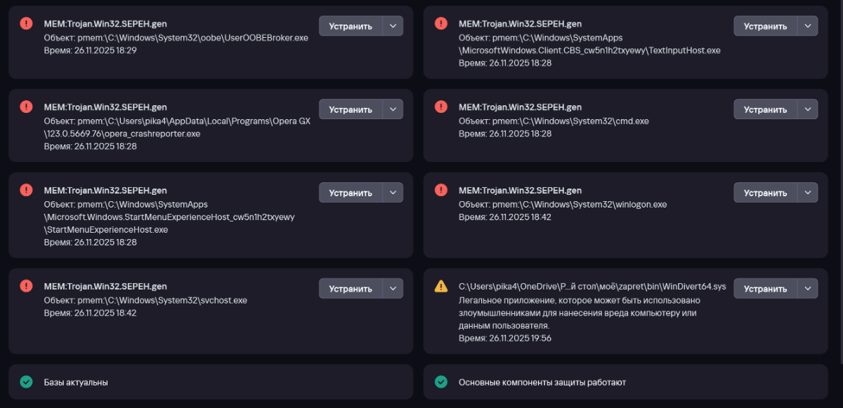 У меня установлен Kaspersky Plus. Со вчерашнего дня начал находить вирус.