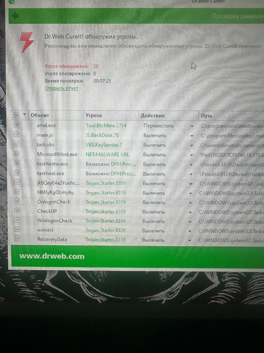 Добрый день. Скачал какойCollectionLog-2025.12.03-09.49.zip-то файл на комп и заметил что он стал сильно греться, проверил утилитой Dr.Web и обнаружил что на компе вирусня. Помогите плиз