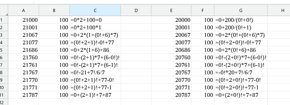 (0!/2)V(2+7+"01")=100        (not-01)