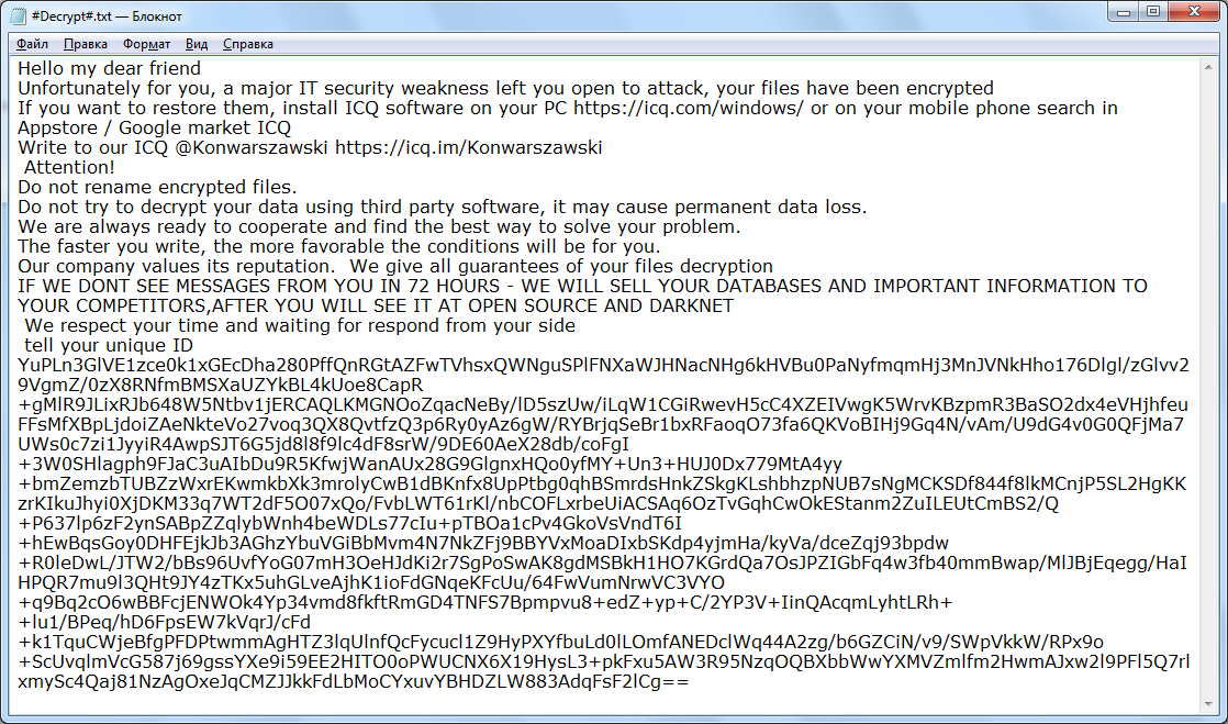sprint33 Опубликовано 8 августа, 2021 Автор Опубликовано 8 августа, 2021 21.07.2021 в 23:22, thyrex сказал: А сообщения от вымогателей для связи где? Мы выключили сервер до окончания шифрования. Сообщения нигде не нашли. А вот что пишут об этом шифровальщике на других сайтах: Спойлер четверг, 28 ноября 2019 г. BigBossHorse BigBossHorse Ransomware Variants: Heronpiston, Horsedeal, HorseLeader, XHamster, InHorseWeTrust (шифровальщик-вымогатель) (первоисточник) Translation into English Этот крипто-вымогатель из семейства GarrantyDecrypt шифрует данные пользователей, а затем требует связаться с вымогателями, чтобы узнать, как заплатить выкуп и файлы. Оригинальное название: в записке не указано. --- Обнаружения (нет ранних образцов): DrWeb -> Trojan.Encoder.30568 BitDefender -> Gen:Heur.Ransom.Imps.1, Trojan.GenericKD.42254464 ALYac -> Trojan.Ransom.BigBosshorse Avira (no cloud) -> TR/AD.RansomHeur.uvzup ESET-NOD32 -> A Variant Of Win32/Filecoder.Outsider.C McAfee -> Ransom/Horsedeal TrendMicro -> TROJ_FRS.0NA103AH20 Symantec -> Downloader, ML.Attribute.HighConfidence --- © Генеалогия: GarrantyDecrypt > BigBossHorse (Heronpiston, Horsedeal) Изображение — логотип статьи К зашифрованным файлам добавляются расширения: .bigbosshorse .heronpiston .horsedeal Внимание! Новые расширения, email и тексты о выкупе можно найти в конце статьи, в обновлениях. Там могут быть различия с первоначальным вариантом. Активность этого варианта крипто-вымогателя из семейства GarrantyDecrypt была замечена в ноябре-декабре 2019 и в январе 2020 г. Ориентирован на англоязычных пользователей, что не мешает распространять его по всему миру. Записка с требованием выкупа называется: #Decryption#.txt Содержание записки о выкупе: All your files have been ENCRYPTED!!! Write to our email - bigbosshorse@ctemplar.com Or contact us via jabber - bigbosshorse@xmpp.jp Jabber client installation instructions: Download the jabber (Pidgin) client from https://pidgin.im/download/windows/ After installation, the Pidgin client will prompt you to create a new account. Click - Add In the -Protocol field, select XMPP In -Username - come up with any name In the field -domain - enter any jabber-server, there are a lot of them, for example - exploit.im Create a password At the bottom, put a tick -Create account Click add If you selected -domain - exploit.im, then a new window should appear in which you will need to re-enter your data: User password You will need to follow the link to the captcha (there you will see the characters that you need to enter in the field below) If you don't understand our Pidgin client installation instructions, you can find many installation tutorials on youtube - https://www.youtube.com/results?search_query=pidgin+jabber+install Attention! Do not rename encrypted files. Do not try to decrypt your data using third party software, it may cause permanent data loss. Decryption of your files with the help of third parties may cause increased price (they add their fee to our) or you can become a victim of a scam. tell your unique ID lJWSLNJGJZbvKjZnL/hl5VwkLusRj1kS8a5Wgv6*** [всего 684 знака] Перевод записки на русский язык: Все ваши файлы зашифрованы !!! Пишите на наш email - bigbosshorse@ctemplar.com Или свяжитесь с нами через jabber - bigbosshorse@xmpp.jp Инструкция по установке клиента Jabber: Загрузите Jabber (Pidgin) клиент с https://pidgin.im/download/windows/ После установки клиент Pidgin предложит вам создать новую учетную запись. Нажмите - Добавить В поле -Protocol выберите XMPP В -Username - придумать любое имя В поле -domain - введите любой jabber-сервер, их много, например - exploit.im Создать пароль Внизу поставьте галочку - Создать аккаунт Нажмите добавить Если вы выбрали -domain - exploit.im, то должно появиться новое окно, в котором вам нужно будет повторно ввести ваши данные: Пользователь пароль Вам нужно будет перейти по ссылке на капчу (там вы увидите символы, которые нужно ввести в поле ниже) Если вы не понимаете наши инструкции по установке клиента Pidgin, вы можете найти множество руководств по установке на YouTube - https://www.youtube.com/results?search_query=pidgin+jabber+install Внимание! Не переименовывайте зашифрованные файлы. Не пытайтесь расшифровать ваши данные с помощью сторонних программ, это может привести к необратимой потере данных. Расшифровка ваших файлов с помощью трет